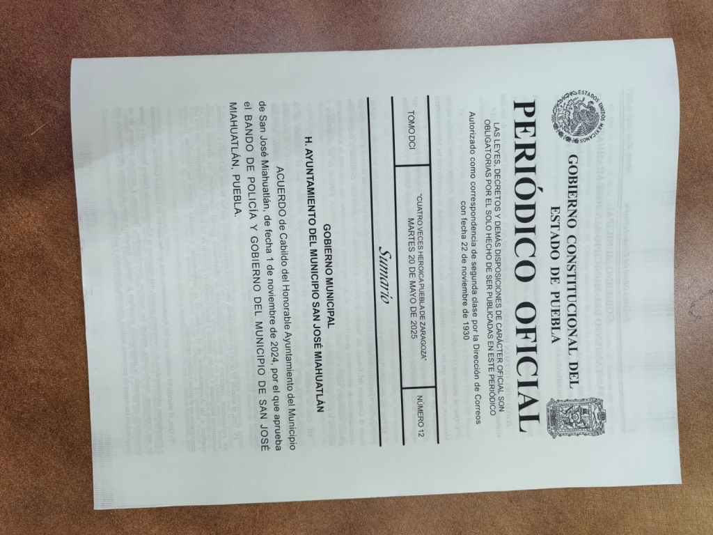 En un hecho sin precedentes para San José Miahuatlán, el presidente municipal Zoilo Noel Guzmán Herrera recibió este día de manos del Lic. Alejandro Melchor Morales, Director del Periódico Oficial del Estado, el Bando de Policía y Gobierno que a partir de ahora regirá la vida comunitaria del municipio y sus cuatro juntas auxiliares.